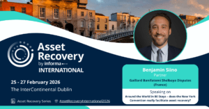 Benjamin Siino will participate in a roundtable titled “Around the World in 80 Stays – does the New York Convention really facilitate asset recovery?” to take place at the Asset Recovery International 2026 conference in Dublin on 26 February 2026.